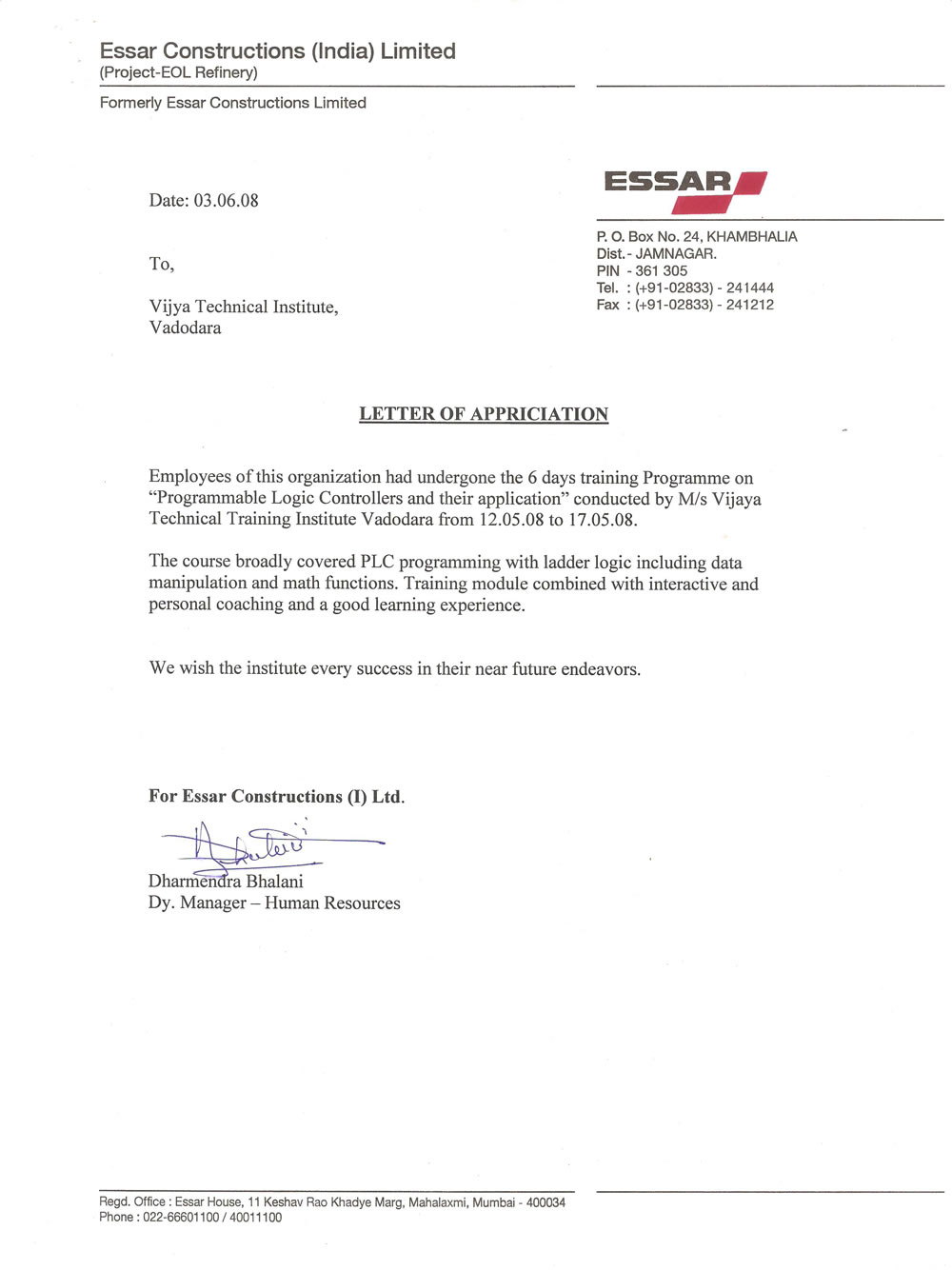 Essar Constructions (India) Limited Baroda Dairy Baroda Dairy Bell Ceramics Ltd. Devanshi Electronics Goel Scientific Glassworks Pvt. Ltd. Suzlon Energy Ltd. Jindal Saw Ltd.
